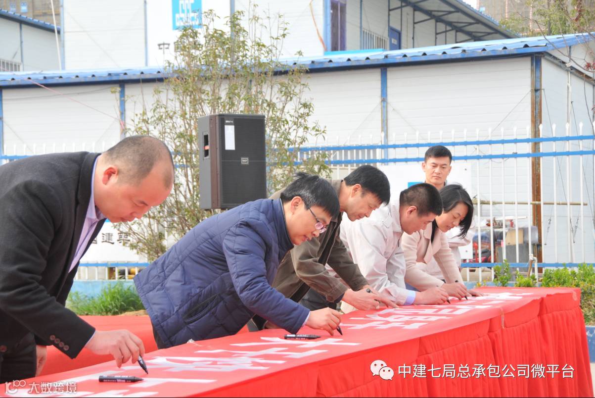 何海英与项目经理丁震、项目与施工班组负责人分别签订了竞赛责任书。