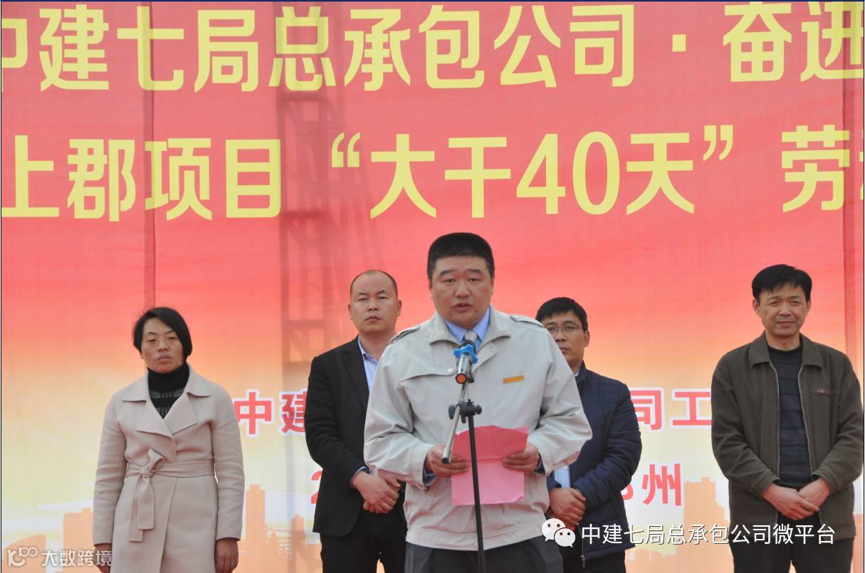 3月24日下午,“大干40天,确保目标顺利实现”的劳动竞赛动员大会启动仪式在中建﹒森林上郡项目成功举行。公司副总经理田振涛,副总工程师、工程部经理何海英出席仪式。建设单位、监理公司代表,项目全体员工和各施工班组200余人参加了仪式。该仪式由公司工会工作部部长李嘉佳主持。