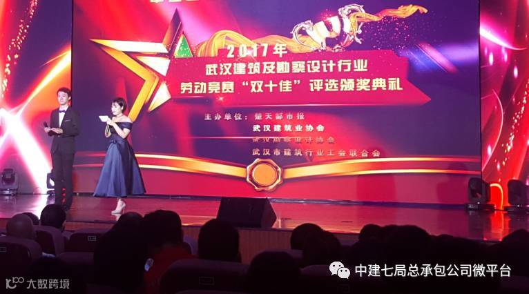 近日,被誉为武汉城建行业“奥斯卡”的2017年武汉建筑及勘察设计行业劳动竞赛“双十佳”评选颁奖典礼,在楚天传媒大厦举行。公司承建的武汉市惠济路49号限价商品住房建设项目项目经理郭远鑫荣获“优秀建设者”荣誉称号。湖北省总工会党组书记、常务副主席董永祥,湖北省建管局副局长叶兵,武汉市城建委副主任汪普查,武汉市总工会副主席胡朝晖,武汉市建筑业协会会长、中建三局总经理易文权等出席本次颁奖典礼。