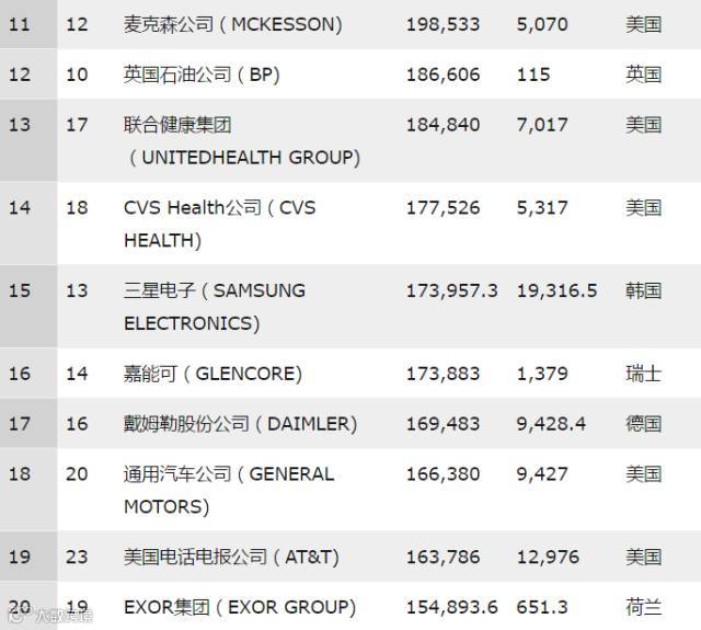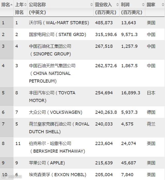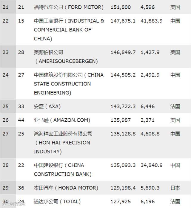 ▼2017年《财富》世界500强排行榜30强