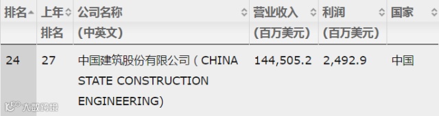 财富中文网于北京时间2017年7月20日晚与全球同步发布了最新的《财富》世界500强排行榜。中国建筑排名再创新高,由去年的第27位上升至第24位,继续保持全球投资建设集团第一位。