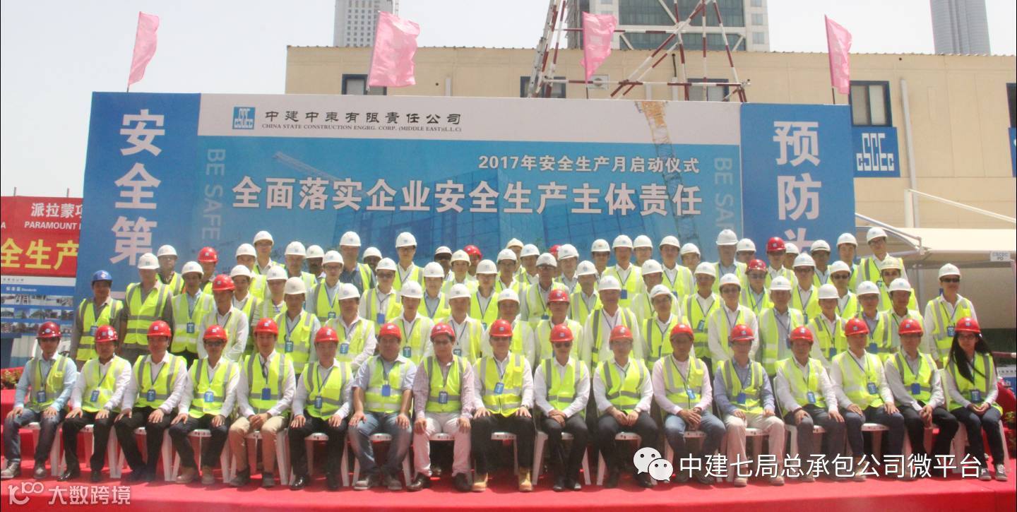 6月4日,中建中东公司历来最大规模的安全生产月启动仪式在公司迪拜派拉蒙项目顺利召开,业主代表默罕默德、中东公司房建事业部助理总经理李四喜、派拉蒙项目代表许辉、项目经理高玉春及中东公司部分领导和中建中东公司所有在建项目项目经理、安全总监、结构队、装修队代表等共计200余人参加了本次启动仪式,仪式由中东公司房建事业部安全总监张传红主持。