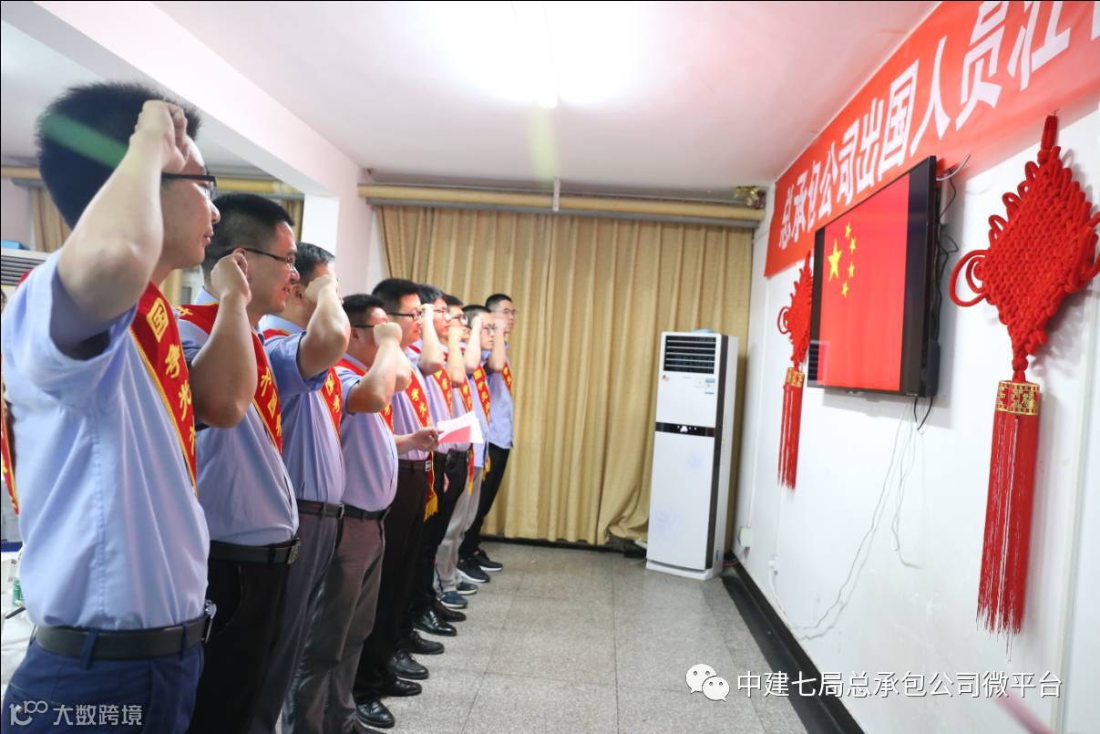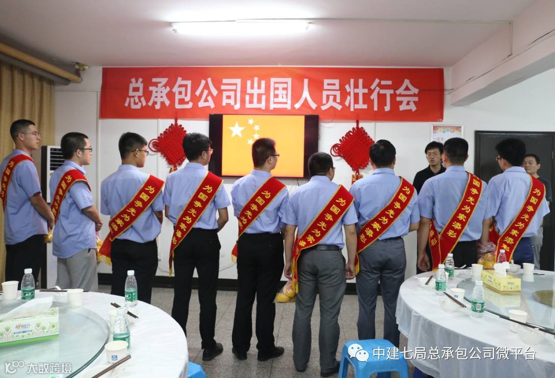 壮行会上,付新建首先致辞,鼓励出国人员要认真学习,努力工作,在新岗位上创造新的辉煌;出国人员面向国旗进行了庄严宣誓,承诺一定忠于祖国、牢记使命、服从指挥、遵纪守法、认真工作,以一流的作风创造一流的业绩,为国争光,为企业添彩。宣誓完毕后,出国人员家属作了表态发言,表示一定操持好自己的“小家”,让出国人员集中精力为总承包公司这个“大家”服务。王修钰向出国人员依次送上了装满苹果的果篮,祝大家出征顺利、旗开得胜,并向出国人员家属送上了鲜花,感谢他们对出国人员工作的理解和支持。