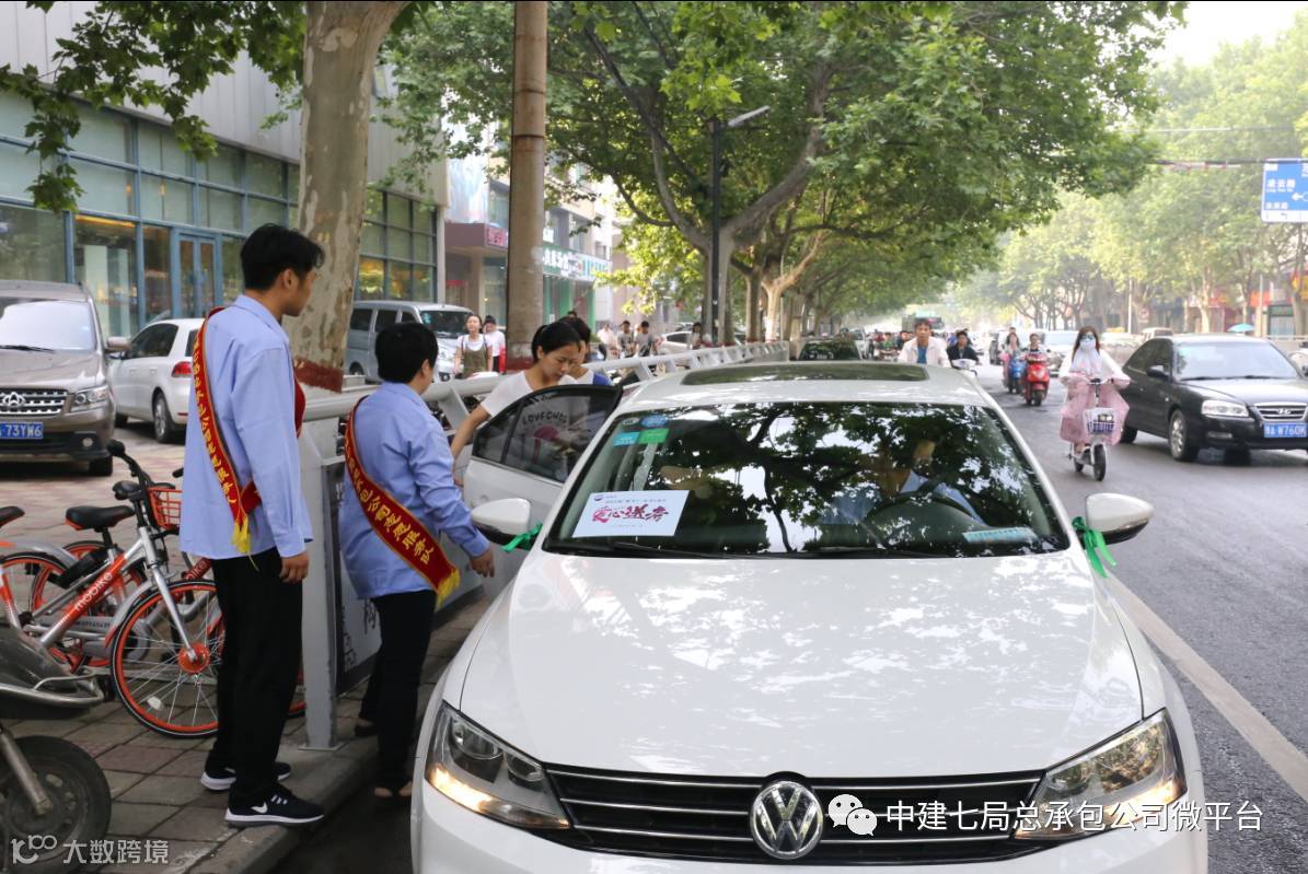 在现场热情邀请考生乘坐爱心车的总承包公司党委副书记张新介绍,今年已是第七年组织车队爱心送考,而且今年参与送考的志愿车队,已从河南各地市所属项目,扩大到了公司下辖的华中、华北、西南、西北4个分公司及所属项目部驻地的15个服务点,参与送考的车辆达42辆。