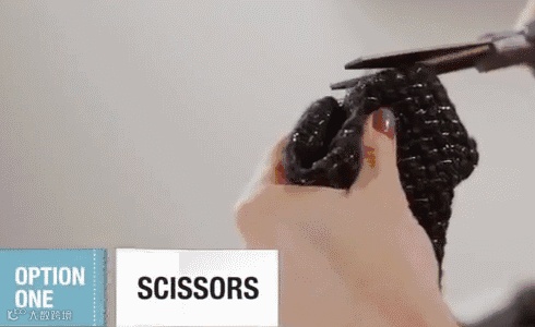 ▼第1种方法:用剪刀剪去袖口和毛衣上的毛球。