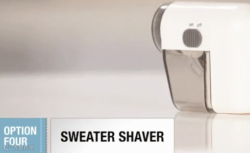 ▼第3种方法:用除毛器来清除毛衣、呢大衣上的毛球,又快又方便。