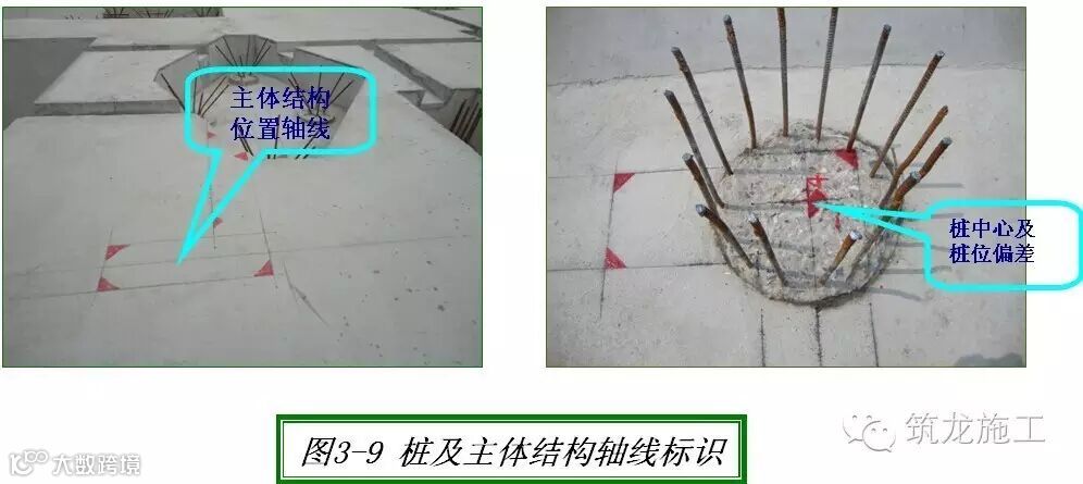 垫层上应标出桩位中心及桩位偏差,同时标出主体结构的构件位置(见图3-9)