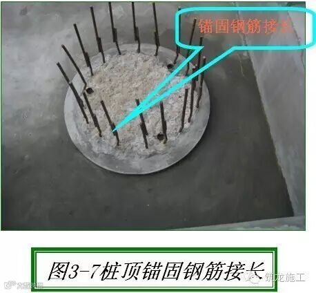 (1)桩嵌入承台内的高度应符合设计要求,嵌入承台部分的桩侧泥皮应清理干净(见图3-4)。