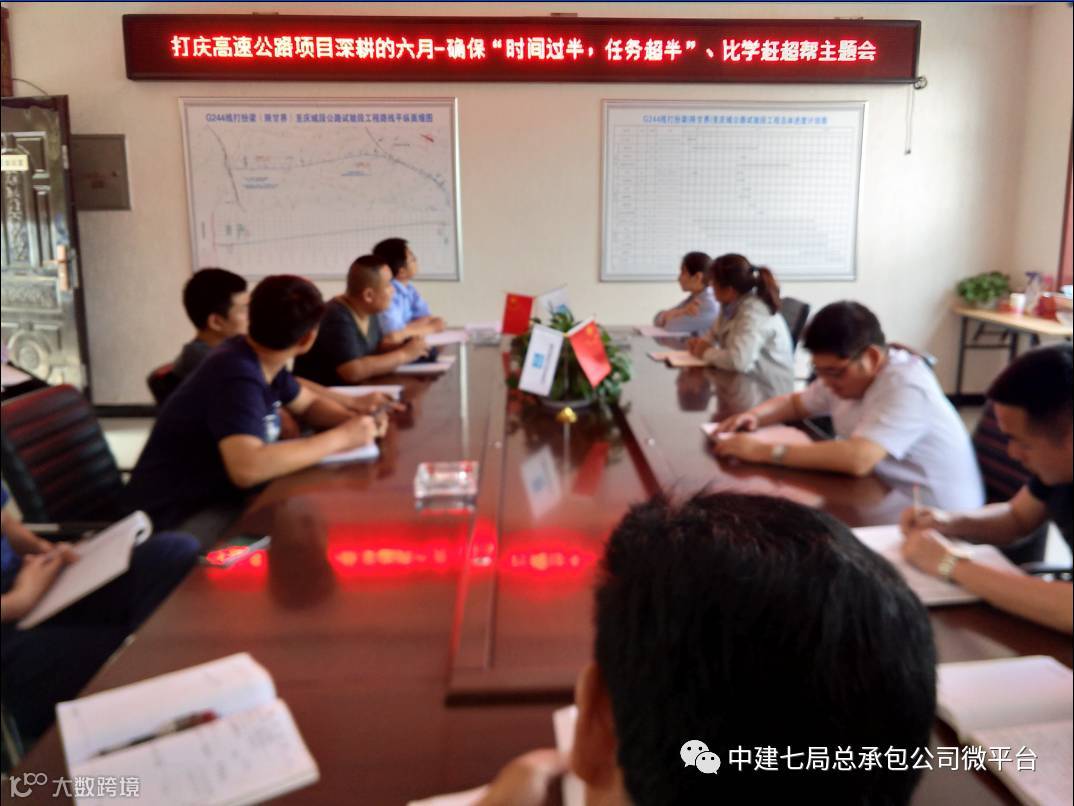 打庆高速公路试验段项目部组织召开“深耕的六月”,确保“时间过半,任务超半”比学赶帮超主题会。