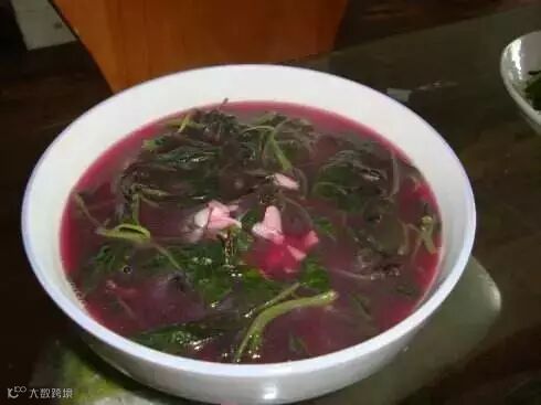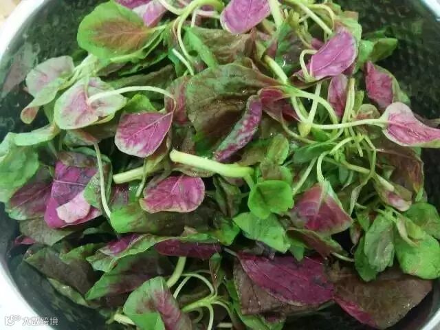 这种菜叫做苋菜,菜身软滑、菜味浓,入口甘香,有润肠胃清热功效。由于本身含有植物色素,煮出来的菜汤呈紫红色,十分可口,还可促进凝血、增加血红蛋白含量。