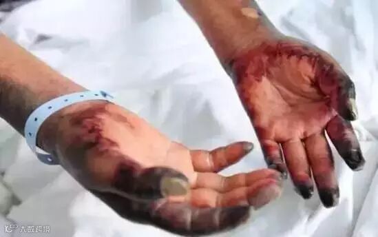 另外,她脚趾、手指头都呈干黑状,摸起来非常坚硬,已不能动弹: