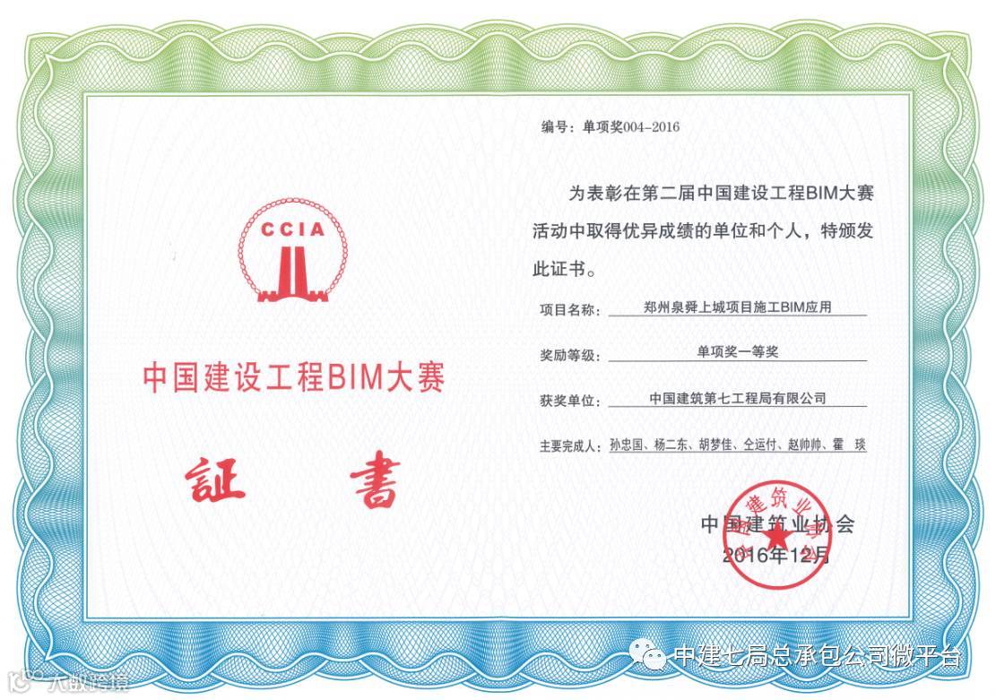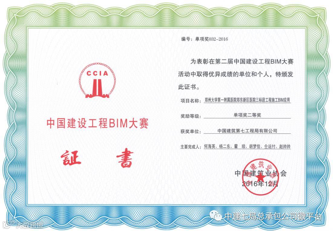 本届BIM大赛共有568项成果参赛,经过初评、复评和综评,公司参赛的两项成果从中脱颖而出,其中《郑州泉舜上城项目施工BIM应用》成果获得了一等奖,《郑州大学第一附属医院郑东新区医院三标段工程施工BIM应用》成果获得了二等奖。