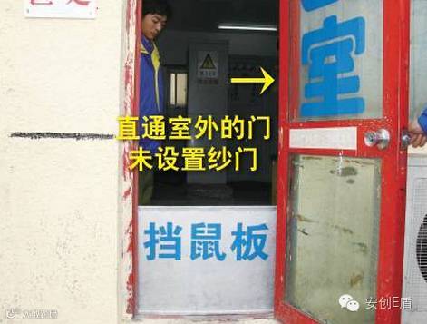 排查依据:DB 11527-2008《变配电室安全管理规范》5.8.2 通往室外的门应装有纱门且门上应装设雨罩。