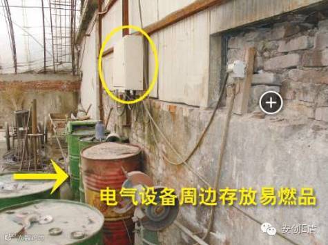 排查依据:GB/T 13869-2008《用电安全导则》6.5:一般环境下,用电产品以及电气线路的周围应留有足够的安全通道和工作空间,且不宜堆放易燃易爆和腐蚀性物品。