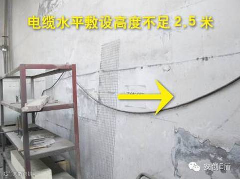 排查依据:GB 50054-2011《低压配电设计规范》7.6.8 无铠装的电缆在屋内明敷,水平敷设时,与地面距离不应小于2.5m。