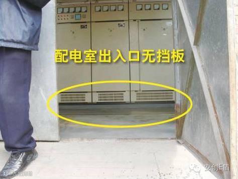 排查依据:DB 11627-2008《变配电室安全管理规范》5.6 变配电室出入口应设置高度不低于400mm的挡板。