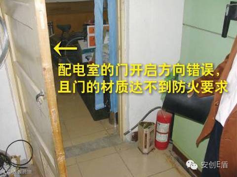 排查依据:DB 11627-2008《变配电室安全管理规范》5.8.1 变配电室出入口的两个门应为防火门,金属门或铁皮应做保护接地,门向外开。