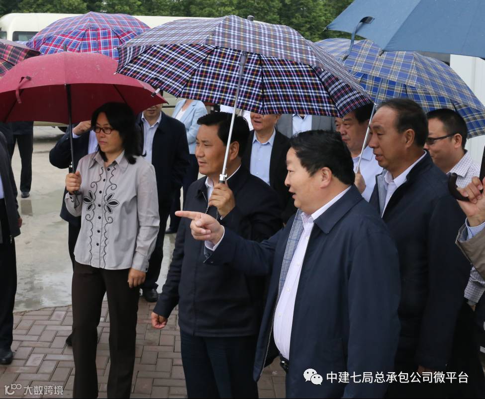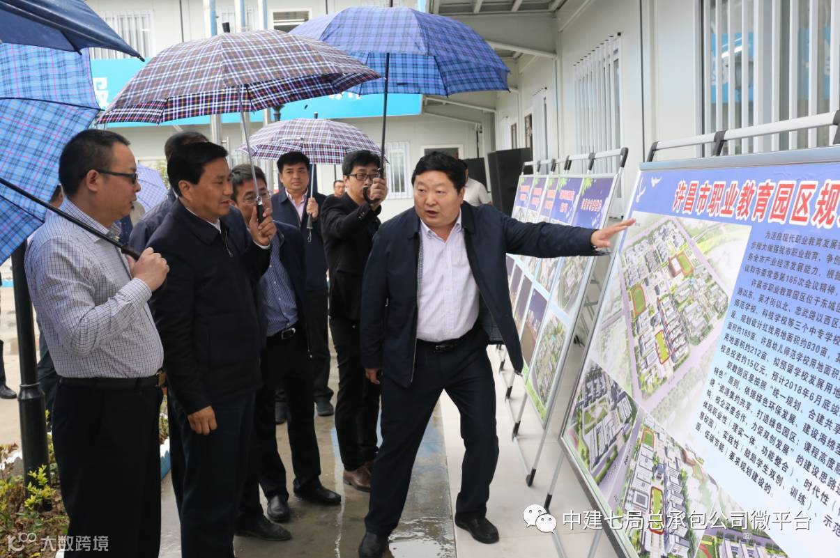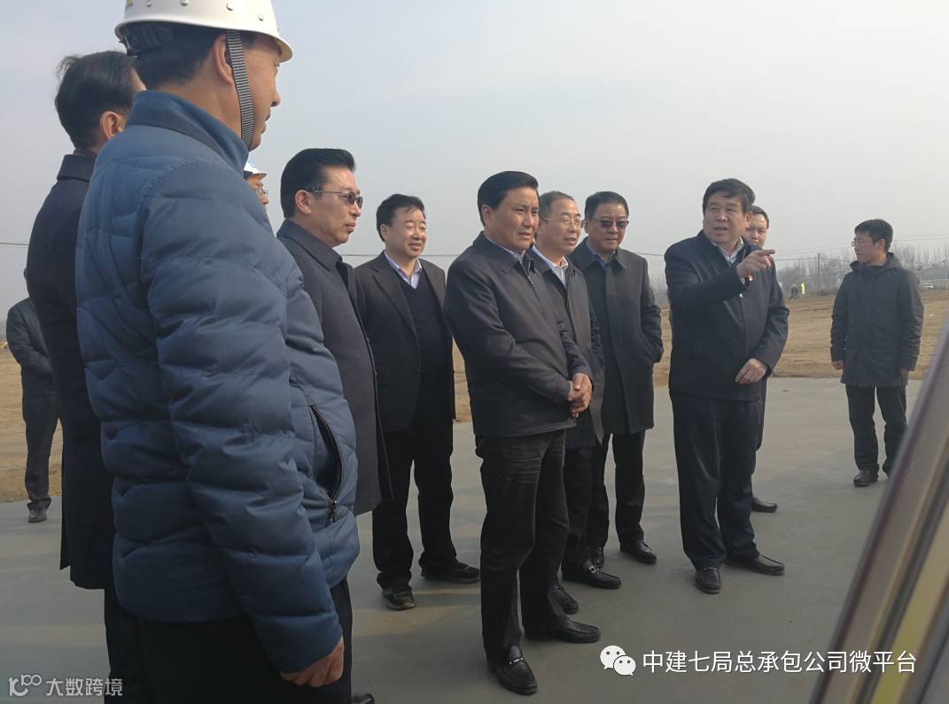 5月3日,许昌市委书记武国定、常务副市长石迎军、副市长王堃、秦春梅,纪委书记陈智勇,市委秘书长熊广田等市委市政府有关领导20余人莅临许昌职教园区项目调研指导工作,这是项目自今年3月开工以来,武国定第三次来此调研指导工作了。中建七局郑州公司副总经理、许昌项目公司总经理谭权生,许昌项目公司运营管理部经理胡亚龙,总承包公司副总经理王宇光、田振涛,项目经理张清军、项目书记孔令奎等陪同。