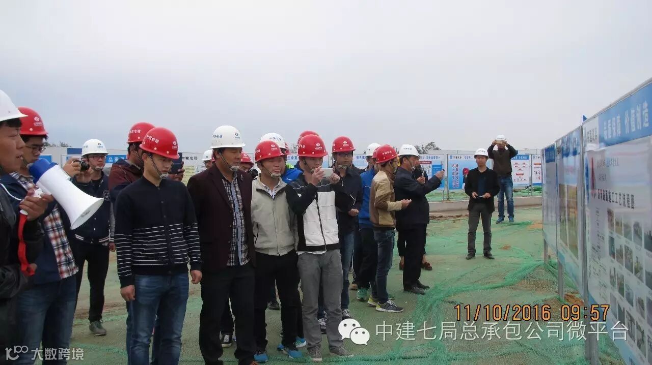 10月11日上午,由郑州航空港区建设工程质量安全监督站组织的质量安全文明施工现场观摩会在我公司港区道路项目郑港七路现场举行,中电建、中铁建、中水电、郑州路桥、中建股份总承包部一分部(中建七局交通公司)、中建股份总承包部二分部(中建七局安装公司)、部分省级施工单位和监理单位的管理人员等100余人参加并进行了经验交流。