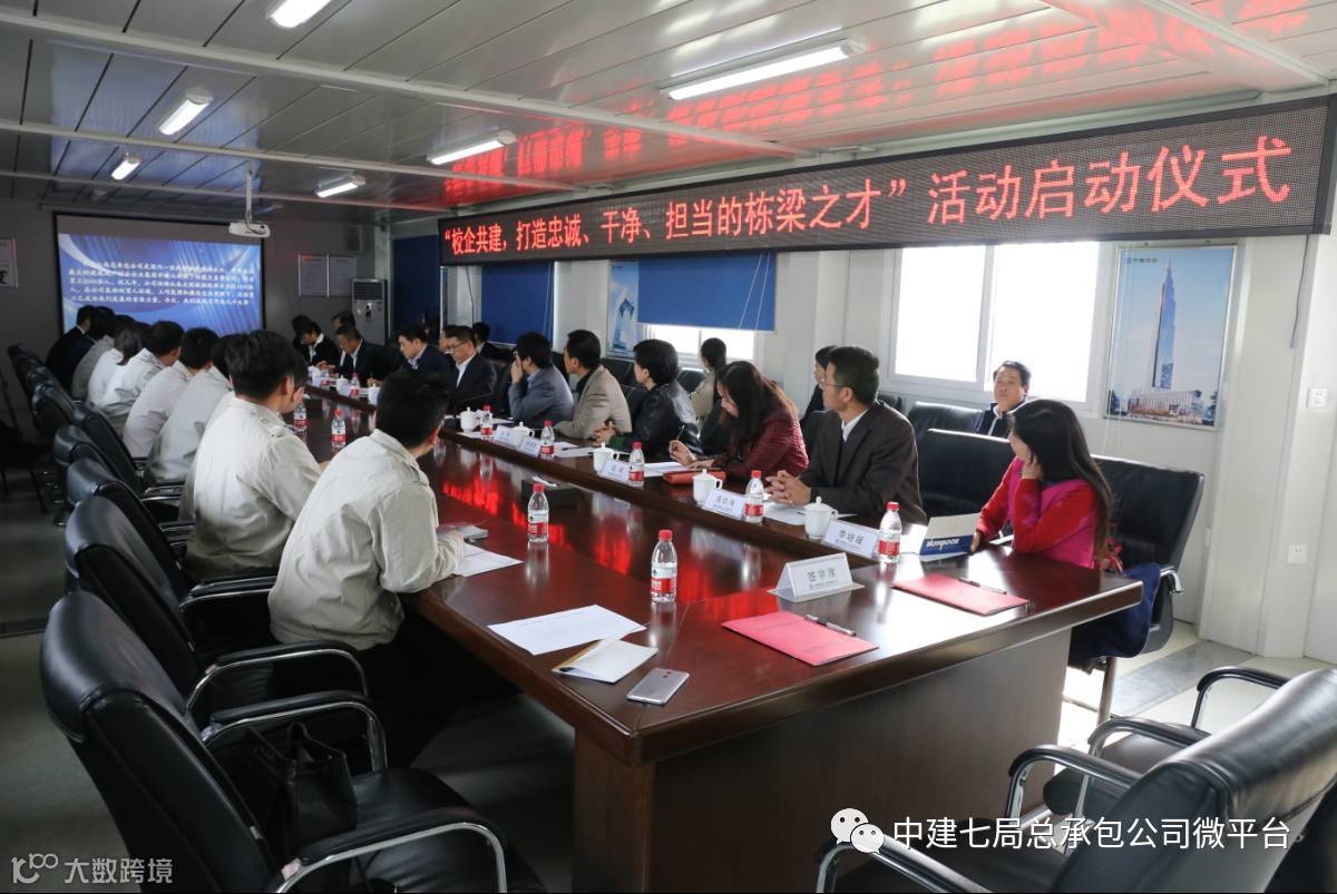 3月16日下午,在河南省目前单体体量最大的安置房项目——中建七局总承包公司白沙安置区二期(永盛家园)项目部举行了一场名为“校企共建,打造忠诚、干净、担当的栋梁之才”的活动启动会。参会双方为中建七局总承包公司(以下简称总承包公司)与河南财经政法大学(以下简称河南财大)。本次启动会是总承包公司继与河南工业大学、郑州大学开展联创共建活动后,再一次牵手河南省重点高校联合举行的校企共建活动。