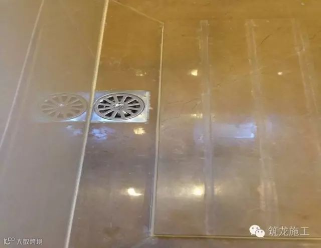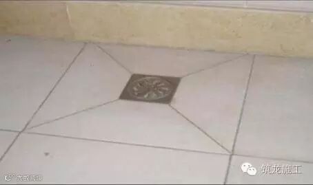 2、采用四边倒八字角方式拼花地漏时,地漏需居中,返水方向明显。