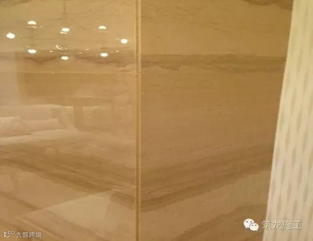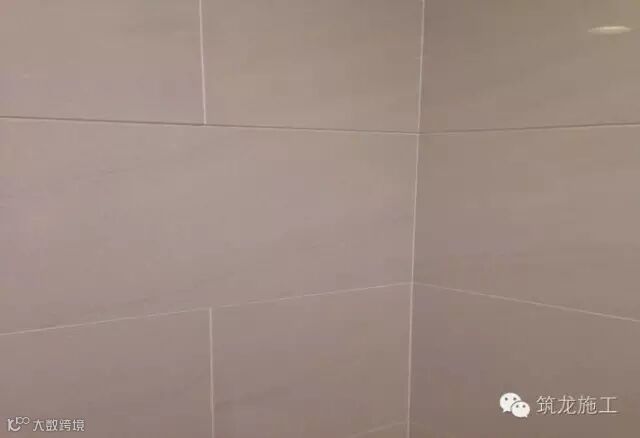 1、瓷砖阳角采用小海棠角(1.5mm),瓷砖切割为42°,防止瓷砖崩角,保证拼缝严密,上下砖的阳角缝顺直;