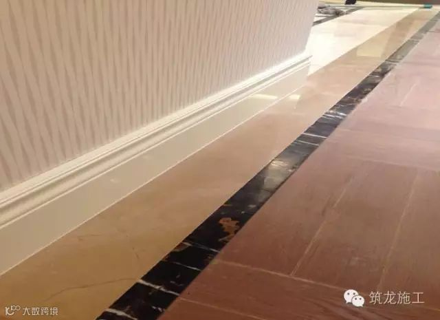 4、踢脚板安装牢固、平直、美观,卫生间采用石材踢脚板;