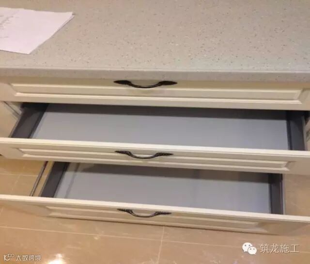 2、门板安装留缝均匀,柜体、台面和墙地面收口均匀、得当,门板、抽屉开启灵活、无异常响声;