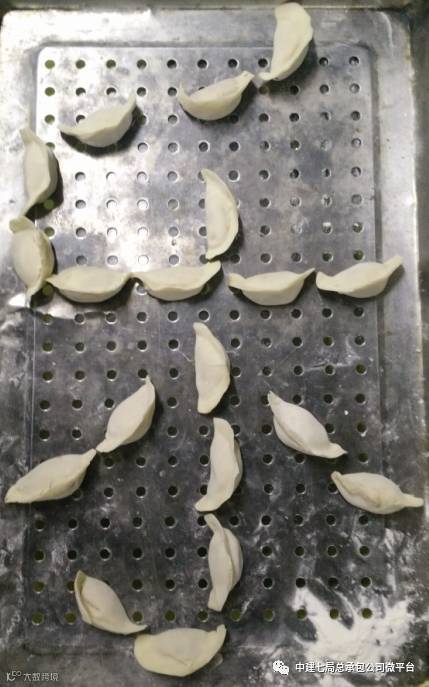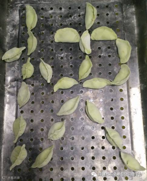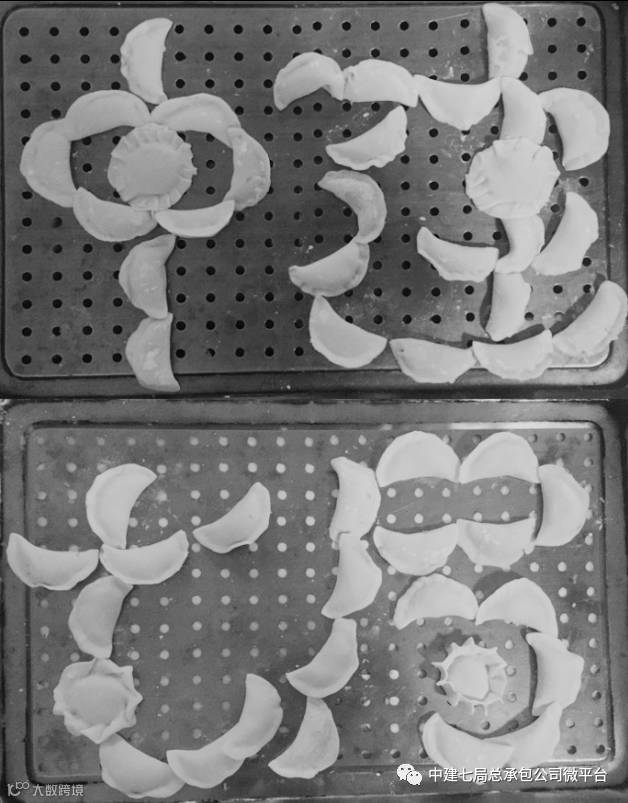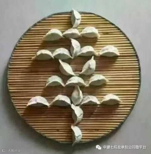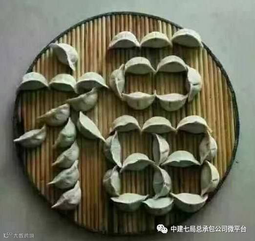 杲村项目部将饺子摆成“幸福”两字,寓意将“幸福”传递给项目每一个人。