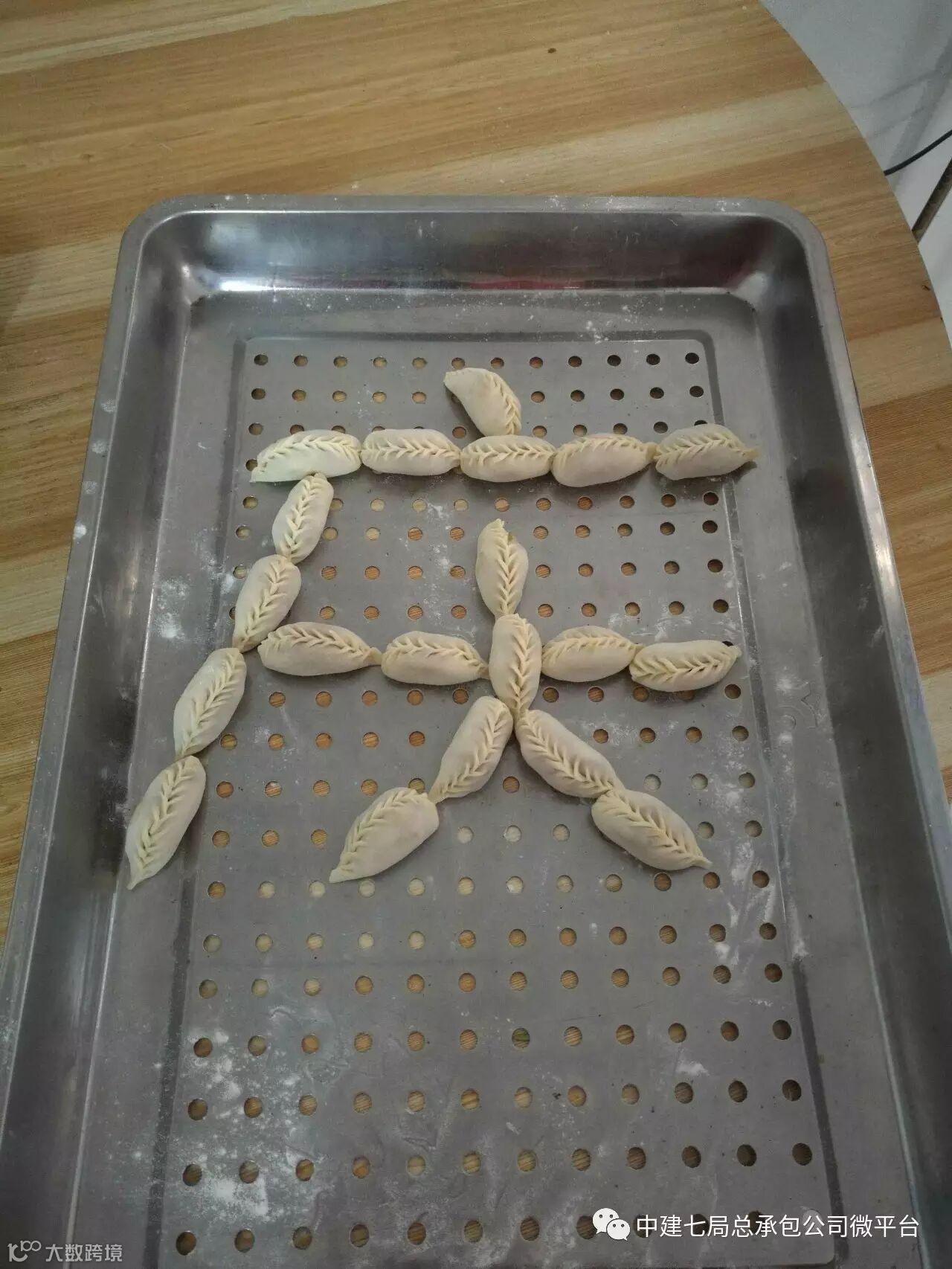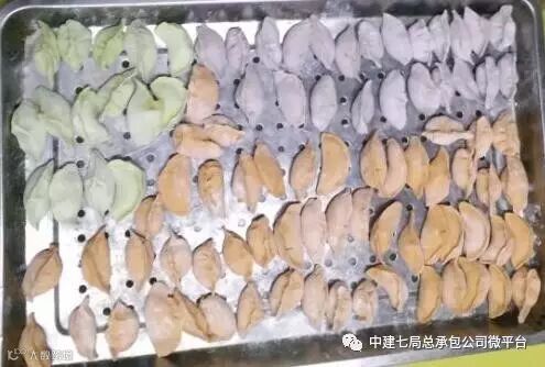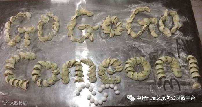 惠济路项目用饺子做的“GO GO GO,Come on!”造型,喻示着中建七局总承包公司大踏步向前进的美好愿景。