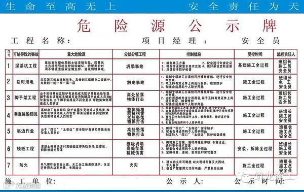 对于工程节后复工这一特殊阶段,必须适时地组织专职安全员和各专业技术人员进行一次安全隐患大排查,根据工作内容及作业计划进行第二次危险源辨识,查找危险因素,针对可能发生工伤事故的苗头,采取防控措施,对辨识出来的危险因素要向员工进行安全教育和交底。