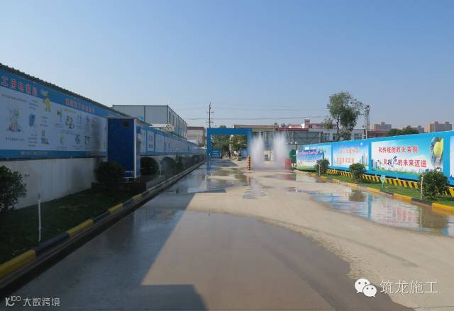 ▲专用洗轮设备,高压水枪辅助、使用雨水收集系统水源,环保高效。