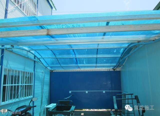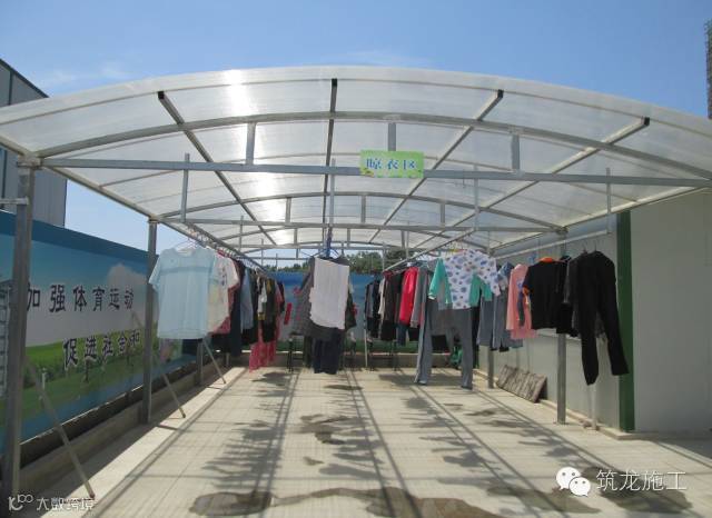 ▲管理人员洗漱区,采用阳光板遮阳棚,不再日晒雨淋