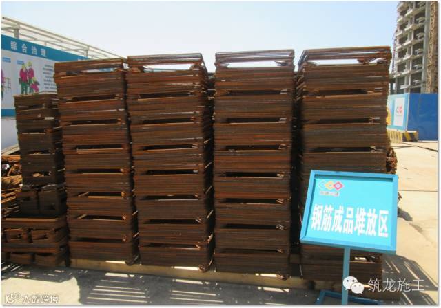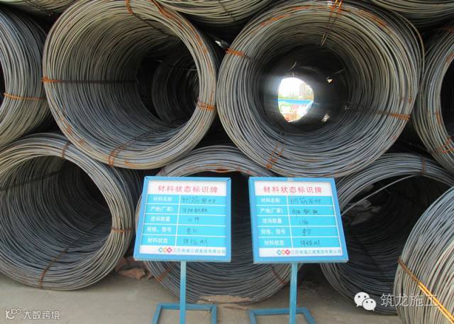 ▲现场钢筋堆放整齐,标识牌显示钢筋待检、已检等状态,杜绝错用钢筋。