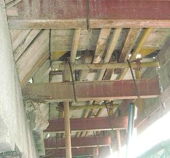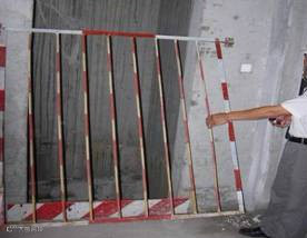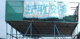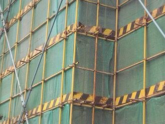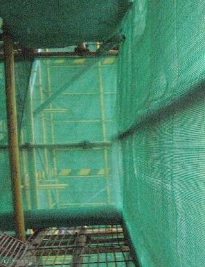双层防护的错误做法:双层防护没有采用硬封闭,采用竹竿代替10mm厚胶合板。