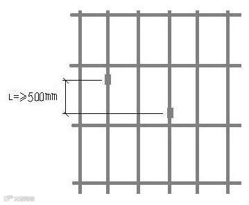 A9、立杆两个相邻立柱接头避免出现在同步同跨内,并在高度方向错开的距离不小于500mm。