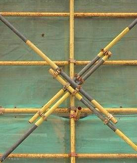 A14、脚手架应在外侧立面整个长度和高度上连续设置剪刀撑。