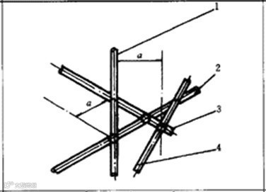 A15、主节点处各扣件中心点距离要求:a≤150mm。(1、立杆2、纵向水平杆3、横向水平杆4、剪力撑)