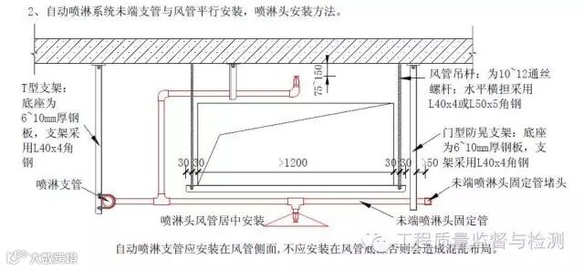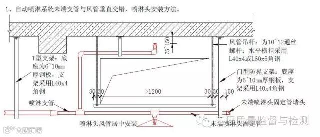 自喷管道在1.2米宽度以上风管处和管道集中处做法