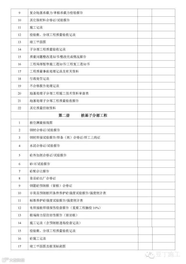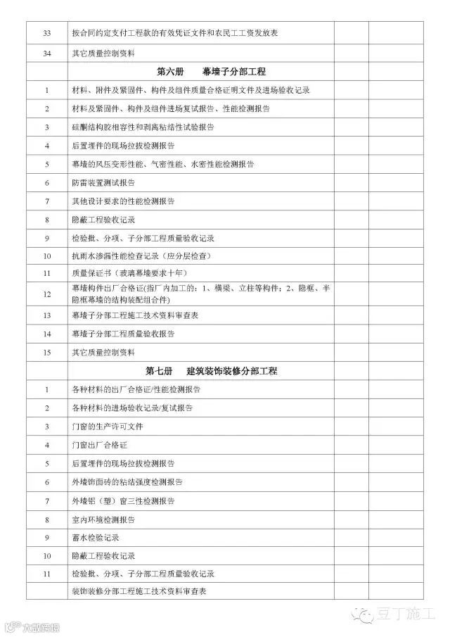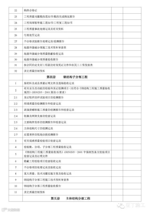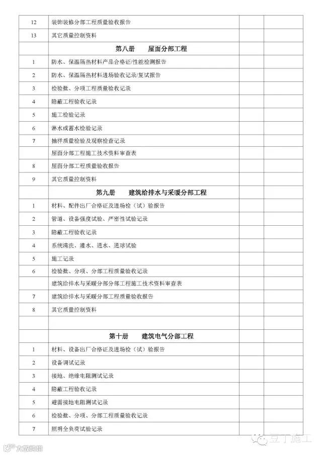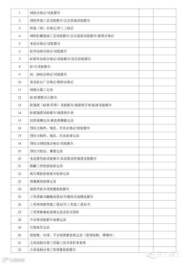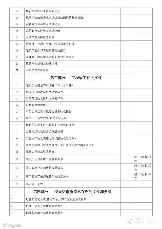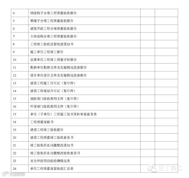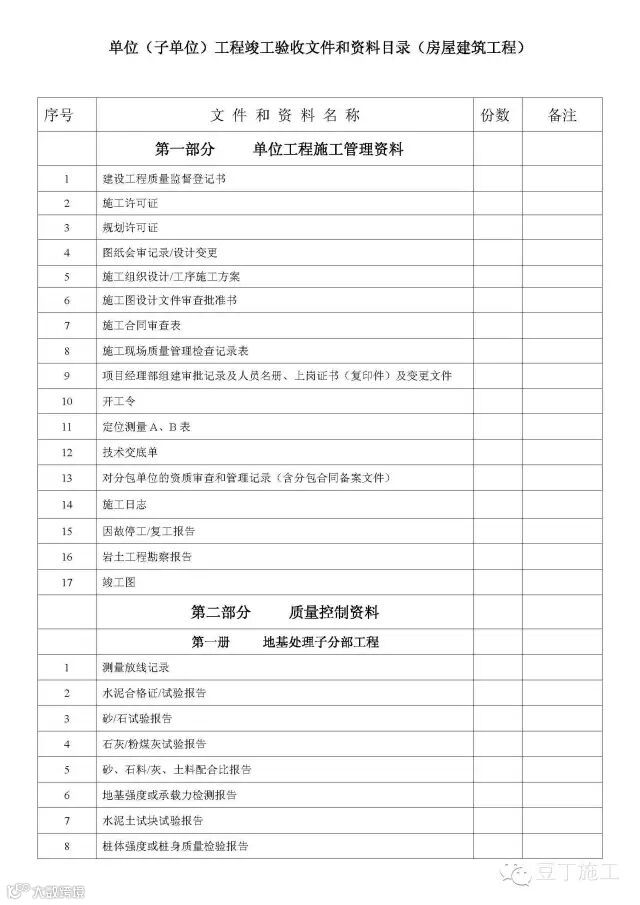 单位(子单位)工程竣工验收文件和资料目录(房屋建筑工程)