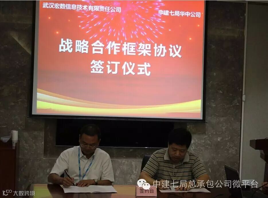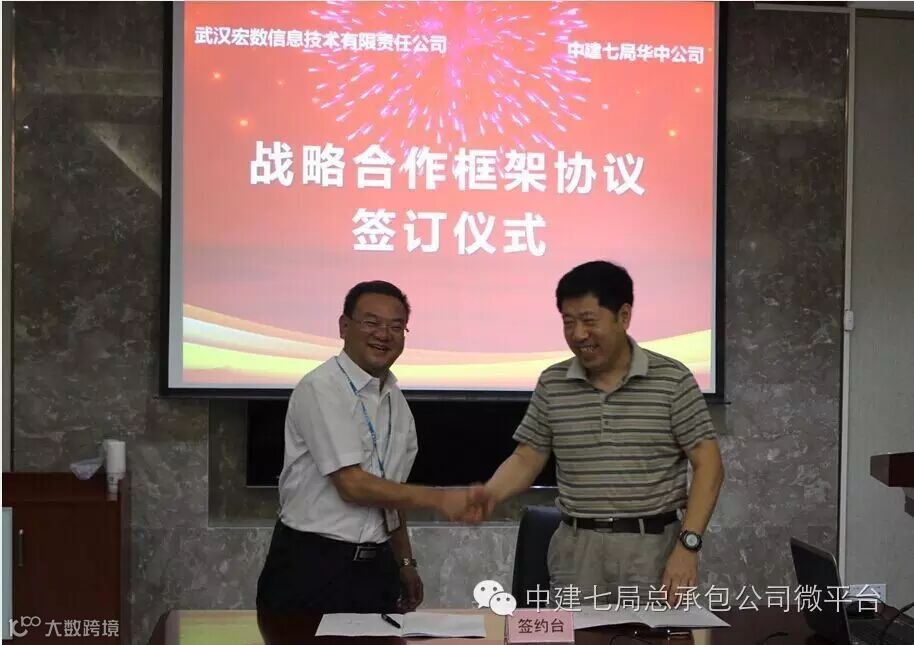近日,总承包公司与武汉宏数信息技术有限责任公司战略合作协议签订仪式在总承包公司华中分公司会议室举行,本协议的签订标志着总承包公司首个互联网+PPP模式项目落地。武汉宏数信息技术有限责任公司总经理王坚、总承包公司副总经理李向阳、华中分公司副总经理敖绪球及分公司各部门负责人参加了签约仪式。