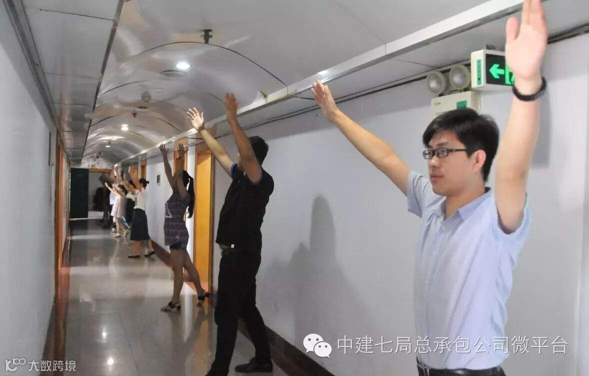 “第九套广播体操现在开始,原地踏步走……”8月15日上午10点整,一种熟悉的音乐在总承包公司机关,中建大厦的6楼、7楼响起,听到音乐,各部门员工纷纷来到楼道依次排开,连续做了两遍第九套广播体操。此举,标志着从当日开始,总承包公司机关全体员工将于每周工作日上午10点,将这一健身活动作为“保留节目”,长期“上演”。