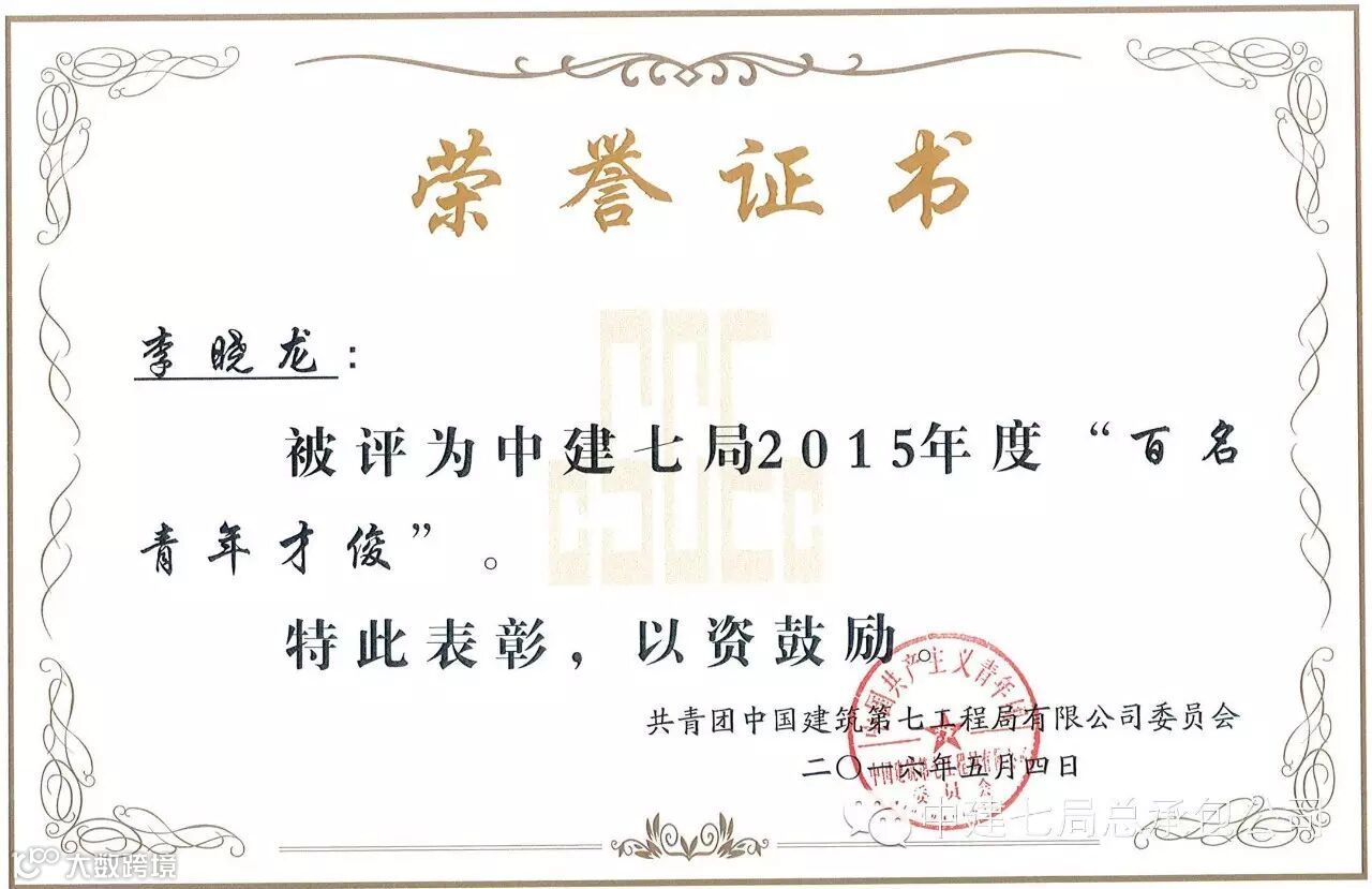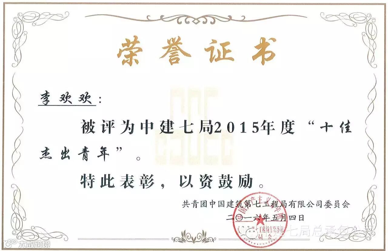 新郑第二社区项目团支部荣获2015年度中建七局“青年文明号”荣誉 称号(证书暂未发放)
