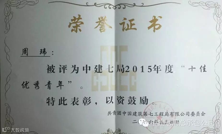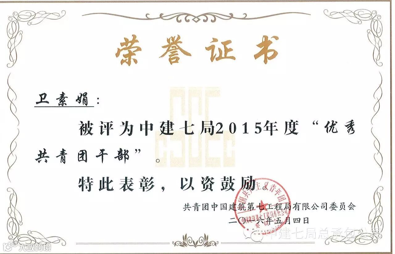 机关团支部书记卫素娟荣获中建七局“优秀共青团干部”荣誉称号