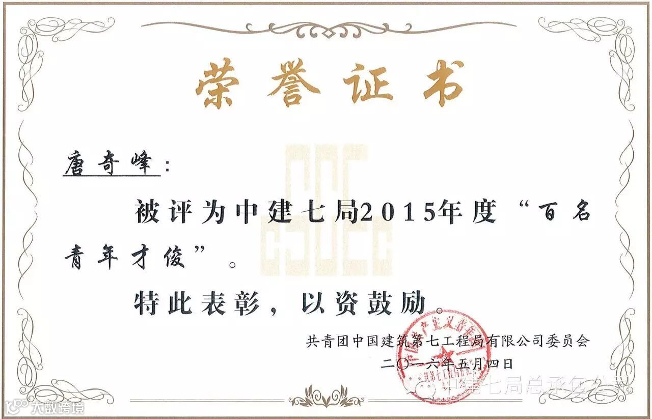 在中建七局五四评选表彰活动中,总承包公司荣获集体和个人奖项多达13项,其中8名员工荣获局“百名青年才俊”荣誉称号,3名员工分别荣获局“十佳优秀青年”、“十佳杰出青年”、“优秀共青团干部”荣誉称号;2个项目团支部分别荣获局“五四红旗团组织、“青年文明号”荣誉称号,公司团委向受表彰的集体和个人表示祝贺,希望受表彰的集体和个人珍惜荣誉,锐意进取,再创佳绩。