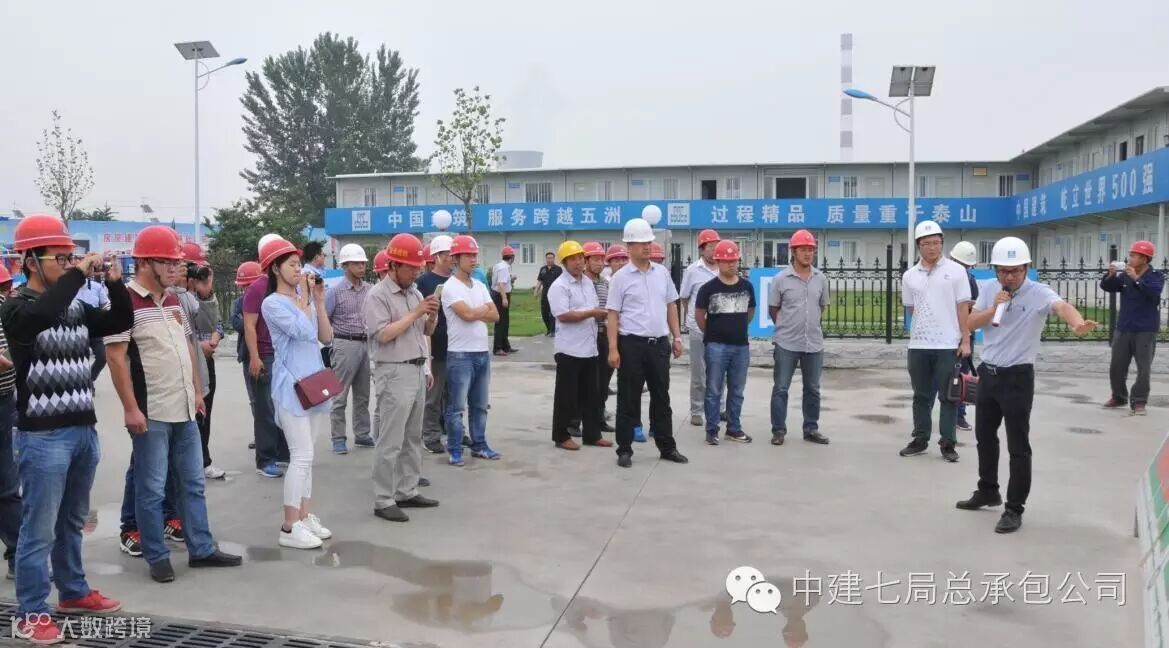 项目的全景、局部景观和生活区碧绿的草坪、整洁的场地、巨幅的中建文化宣传栏,可重复利用的钢板路,道路两旁围挡的自动喷淋防尘系统,科技感十足的防尘检测系统,项目为工人配发的装有定位芯片的安全帽,现场照明采用的LED太阳能路灯,安全体验馆里布置的“高空跌落体验”、“安全帽体验”、“触电体验”、“灭火器演示”、“综合体验架”、 “平衡木体验 ”等等,样板示范区的主体施工过程,二次结构施工及装修等工序展示等等,都被观摩团成员收入了镜头,观摩团成员中不时传出“真是大开眼界”、“没想到建筑工地还能这样美”的赞叹。