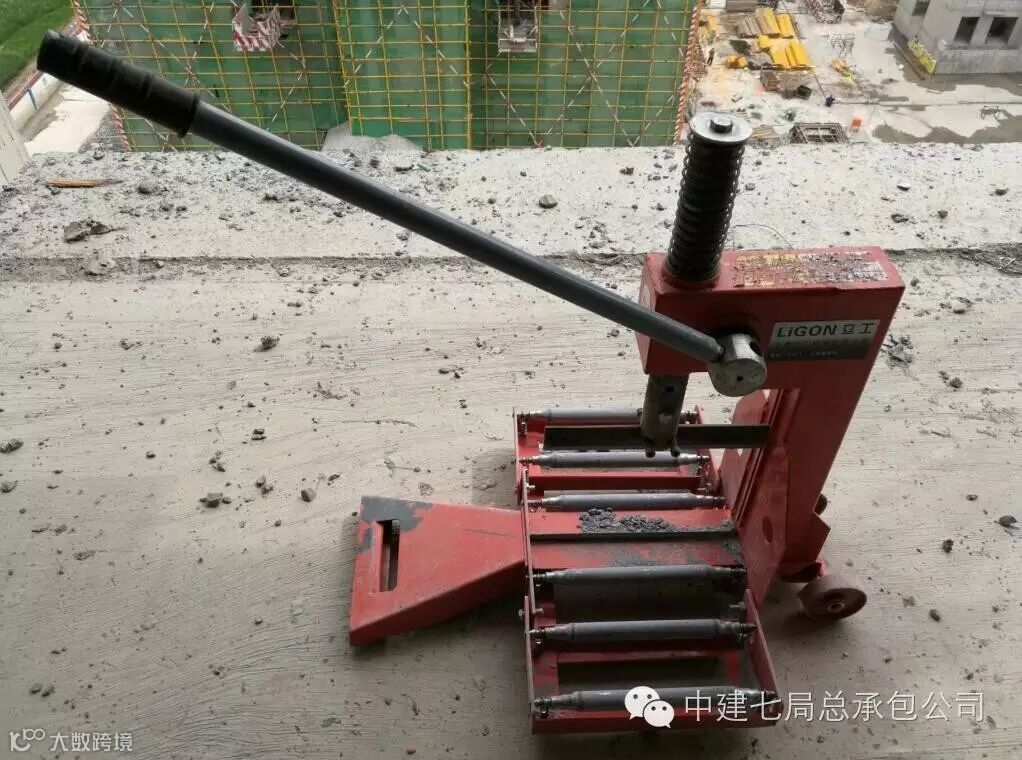 三是设计制作构造柱混凝土泵送机代替传统的人工上料浇筑,即通过空压机加压,使砼快速输送至构造柱内。支模时,在构造柱顶部预留Φ80洞口,洞口外部固定Φ90钢管焊制的“喇叭口”,通过此“喇叭口”输入砼,无需补柱头、无噪音、免振捣且能使构造柱成品密实、光滑、观感好。据平原新区项目经理曹建忠介绍,该泵送机由两人操作,1—2分钟就能完成一根构造柱的砼浇筑,效率提高300%,省时省工省力。