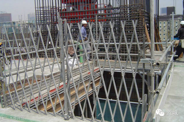 ▲未完成的楼板洞口放置围栏▲