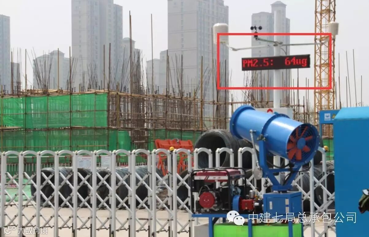 一方面,在施工现场安装扬尘自动监测感应喷淋系统,该系统可实现PM2.5、风速和湿度的在线监测。如,当PM值达到一定数值可自动感应,实现自动喷淋;另一方面,设置自助洗车系统,对过往车辆进行喷淋,防止车辆轮胎污染主干道;三是首次购置雾炮降霾车,每日对项目主干道和区域进行喷洒,实现可移动防污降尘。