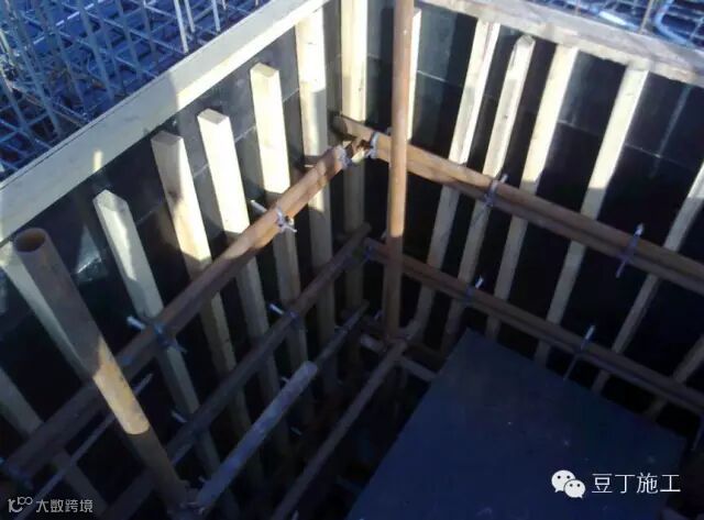 (3)木模板安装周期不宜过长,浇筑混凝土时,木模板要提前浇水湿润,使其胀开密缝。